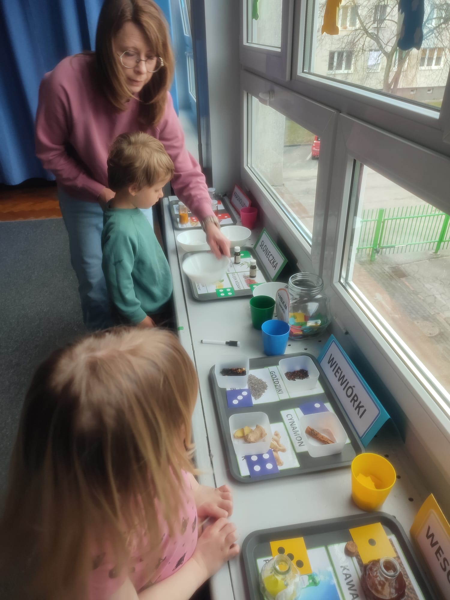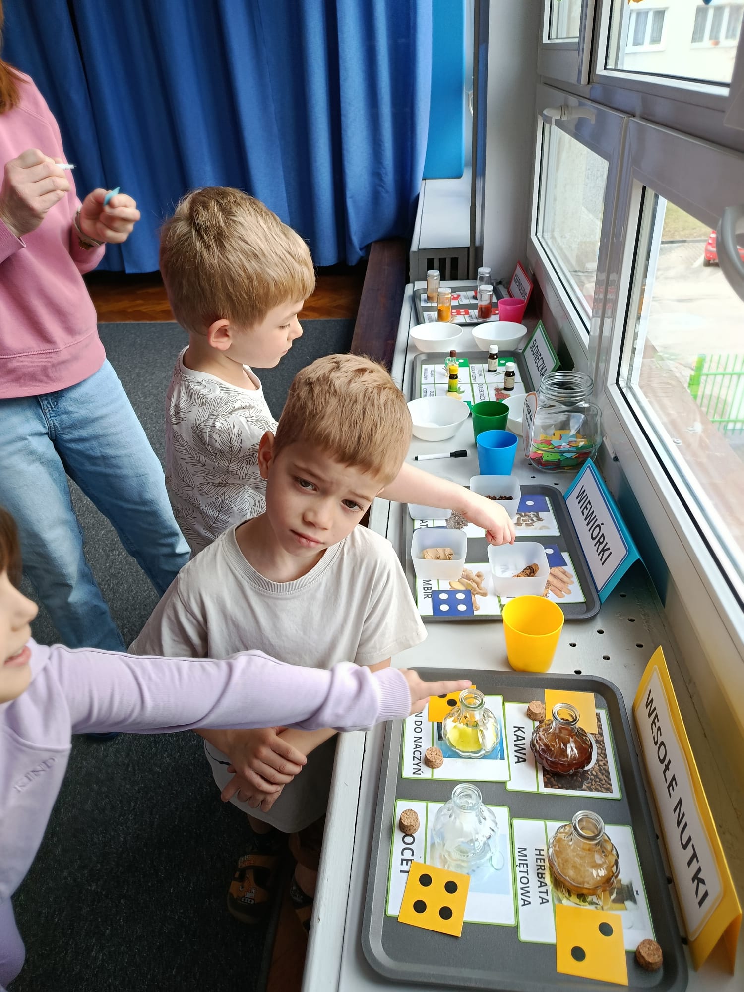19 marca w naszym przedszkolu obchodziliśmy Dzień Zapachów. Była to doskonała okazja do rozwijania zmysłu węchu. Dzieci rozpoznawały zapachy przypraw, olejków zapachowych oraz owoców, a także dzieliły się swoimi skojarzeniami. Nie zabrakło również głosowania na najładniejszy zapach – bezkonkurencyjnie zwyciężył cynamon! To był dzień pełen ciekawych odkryć, radości i sensorycznych wrażeń!