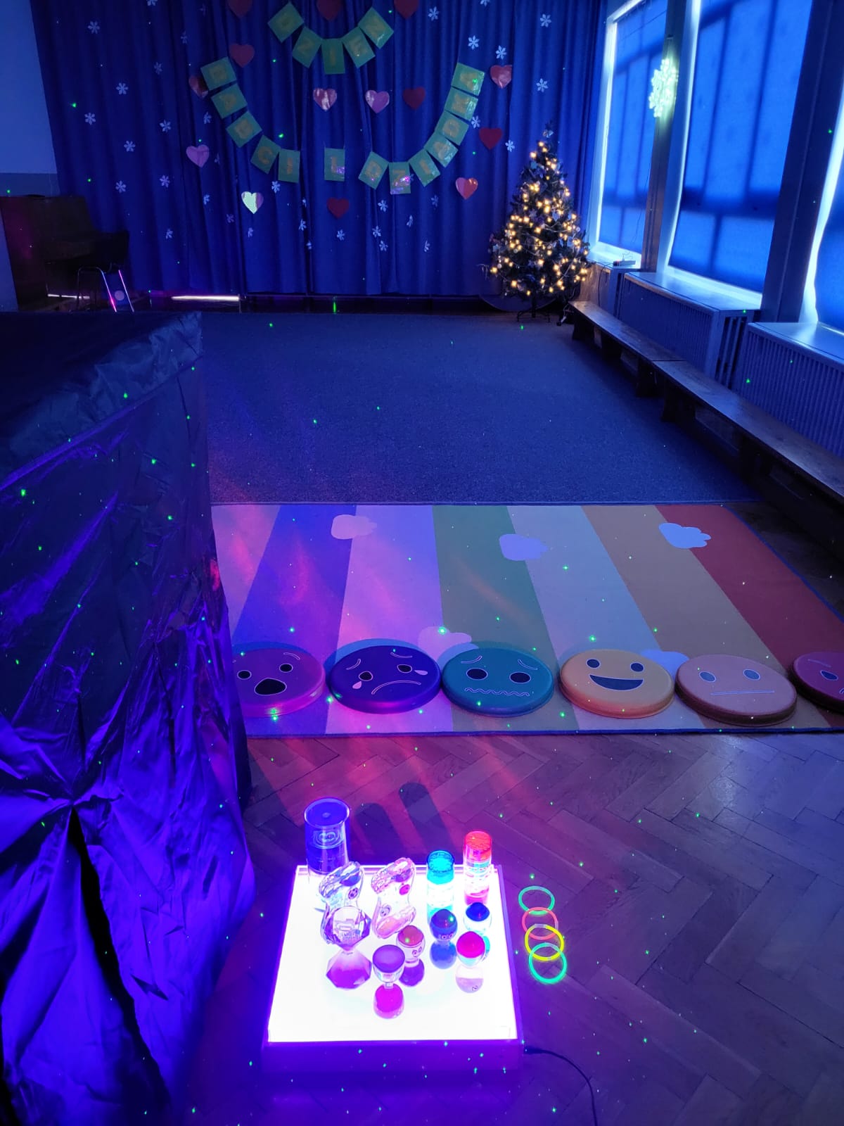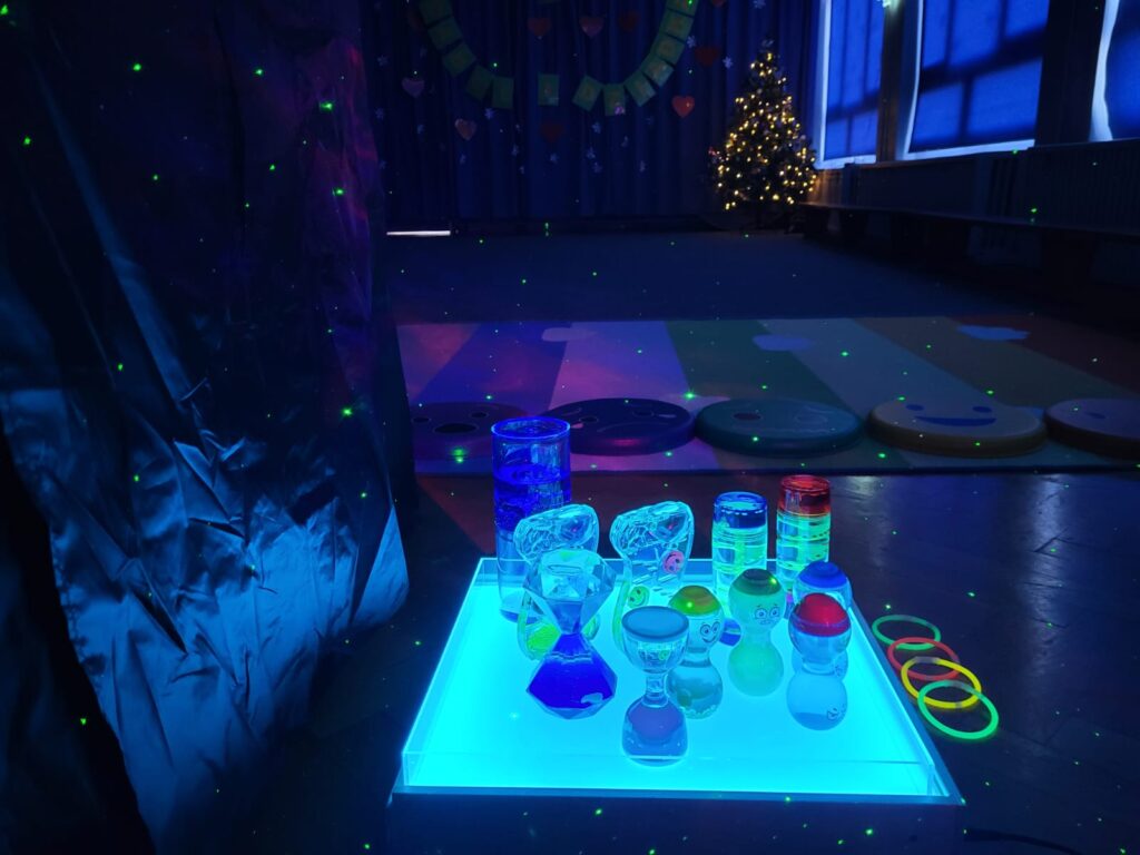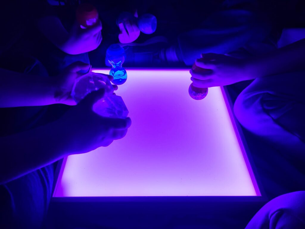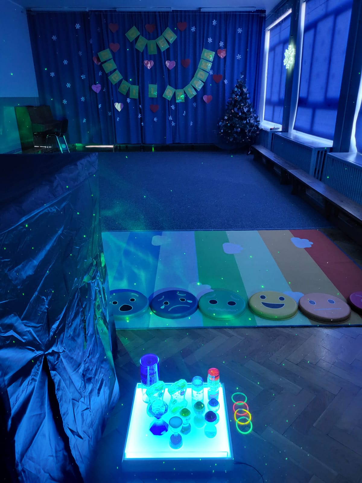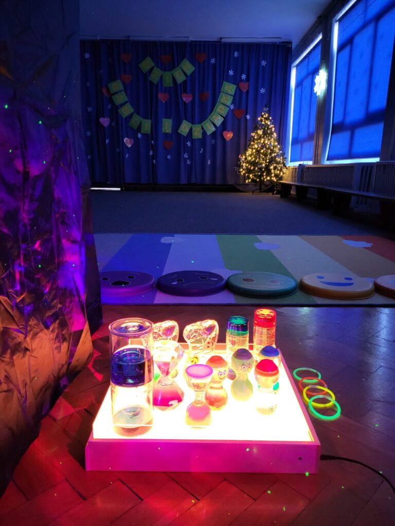 W przedszkolu zaaranżowano Strefę Relaksu z namiotem zaciemniającym, grą świateł, muzyką relaksacyjną. Dzieci rozwijają koncetrację uwagi, umiejętność regulacji emocjonalnej – poznają techniki relaksacji oddechowej, oparte na uważności i progresywnej relaksacji mięśni.