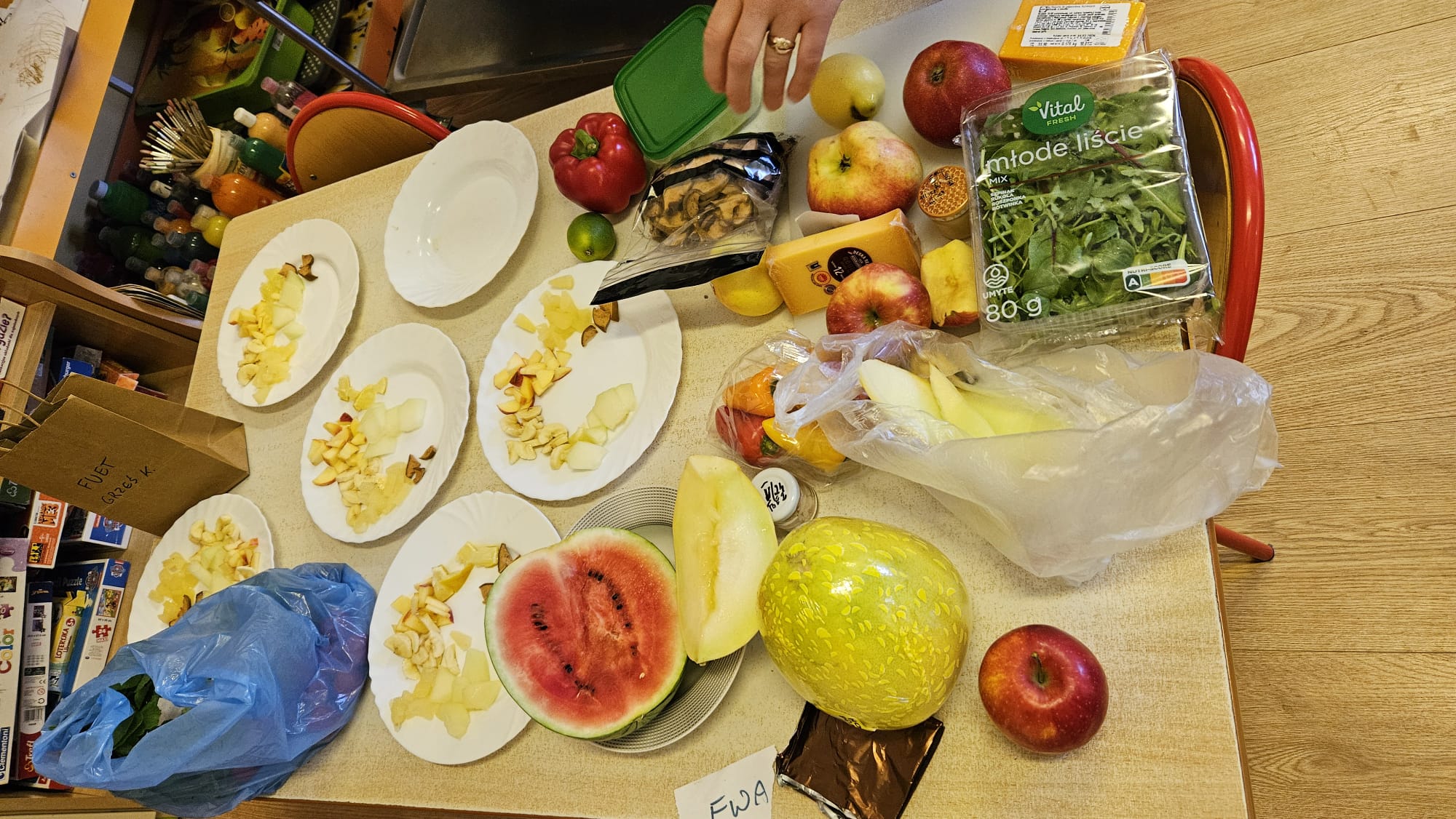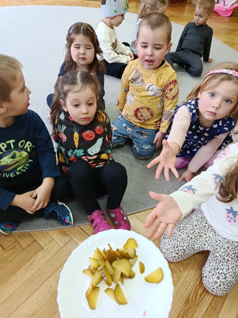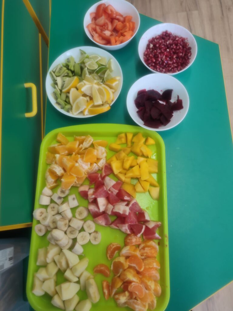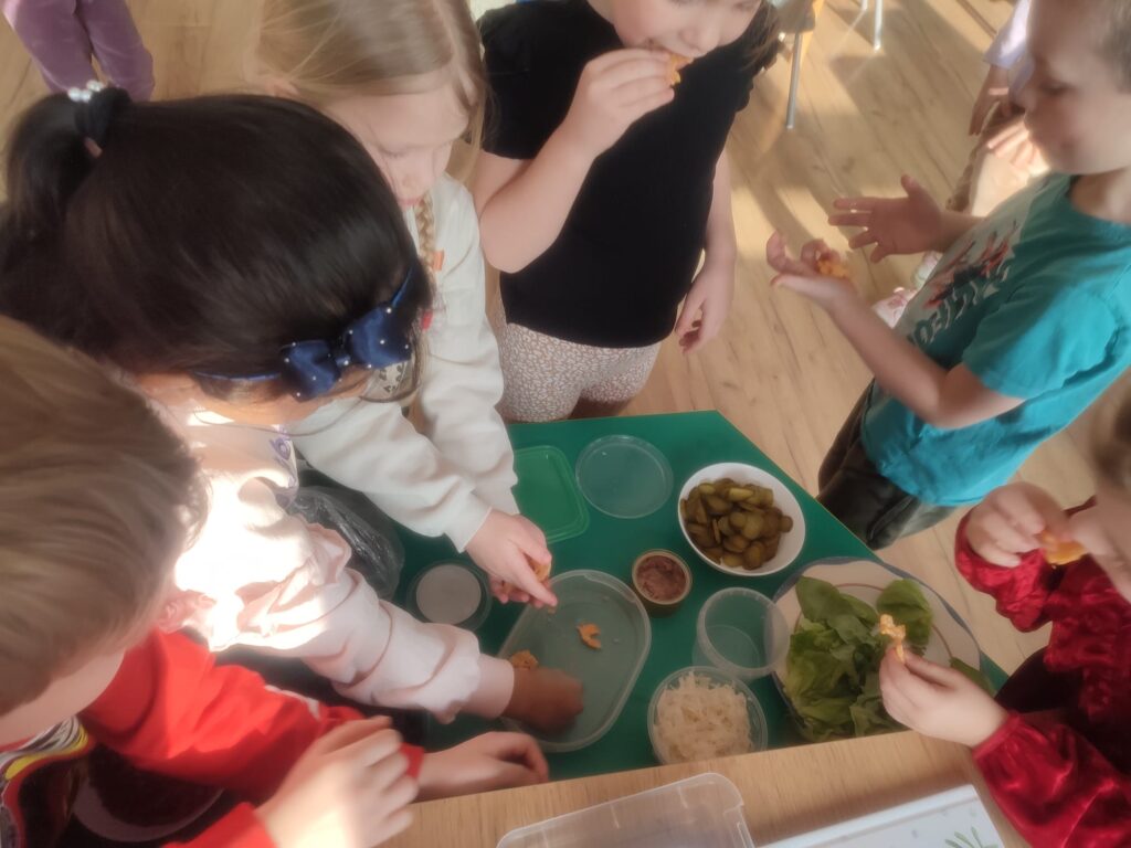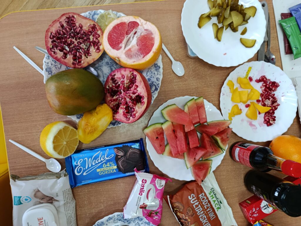 W naszym przedszkolu odbył się Dzień Smaków – dzieci miały okazję degustować różnorodne owoce, warzywa, soki oraz produkty, które przyniosły z domu. Była to pyszna i zdrowa zabawa, podczas której przedszkolaki poznawały nowe smaki i chętnie dzieliły się swoimi ulubionymi przekąskami.