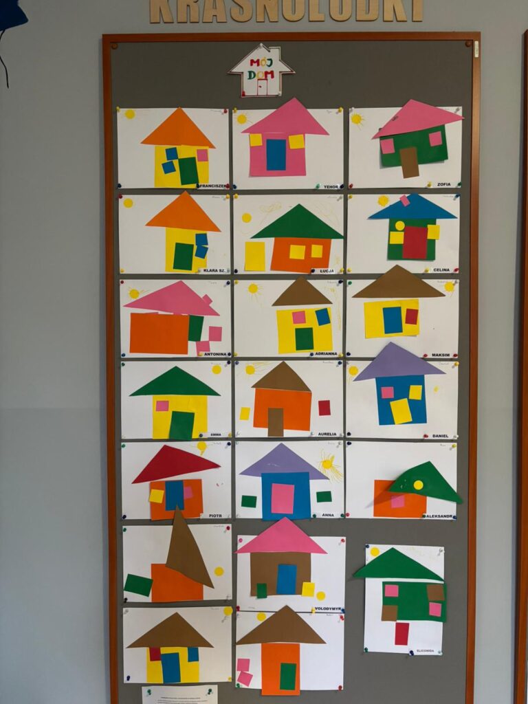 Krasnoludki – Mój dom Opublikowane przezprzedszkole 6 listopada, 2025 Dodaj komentarz do Krasnoludki – Mój dom Dzieci z grupy „Krasnoludki” rozmawiały o tym, czym jest dom i dlaczego jest tak ważny. Na zakończenie zajęć wykonały piękne prace plastyczne pt. „Mój dom”.