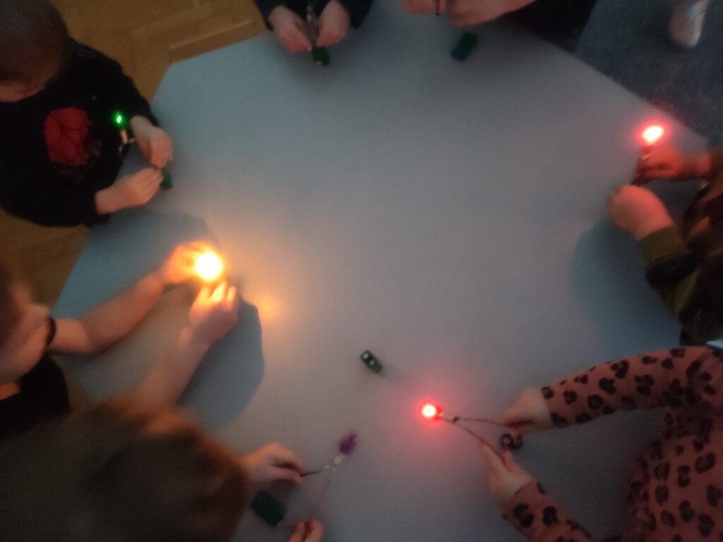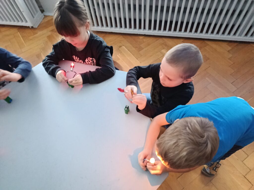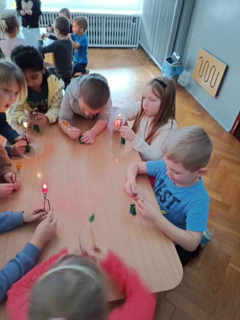 Najwięcej radości sprawiły dzieciom samodzielne eksperymenty z obwodami elektrycznymi, dzięki którym mogły sprawdzić, jak działa prąd i do czego jest potrzebny.