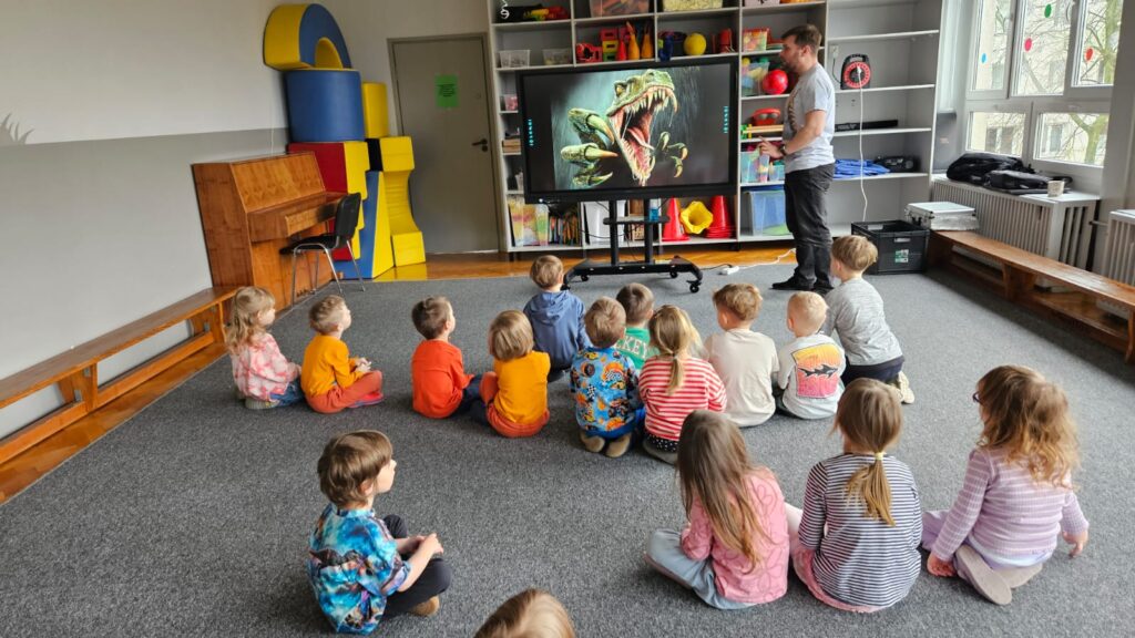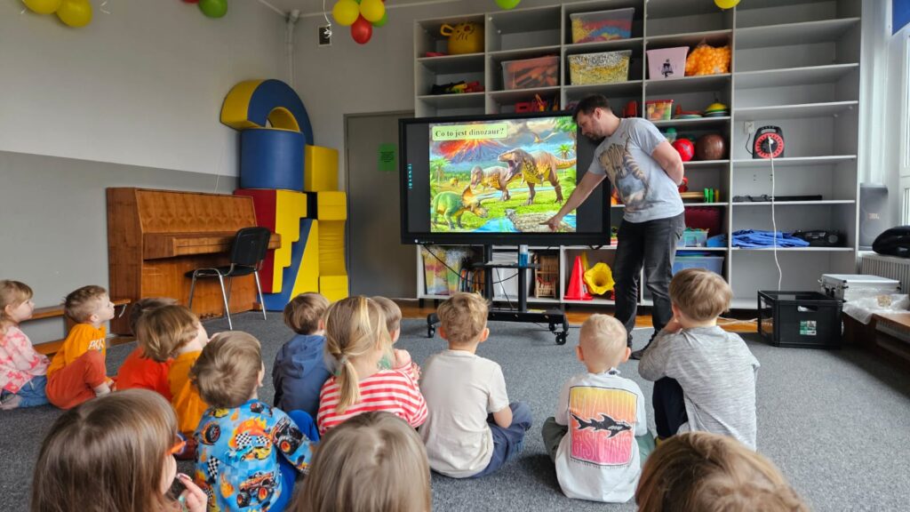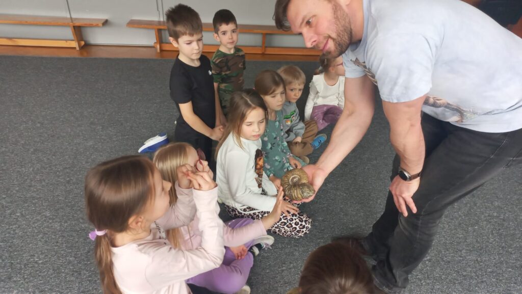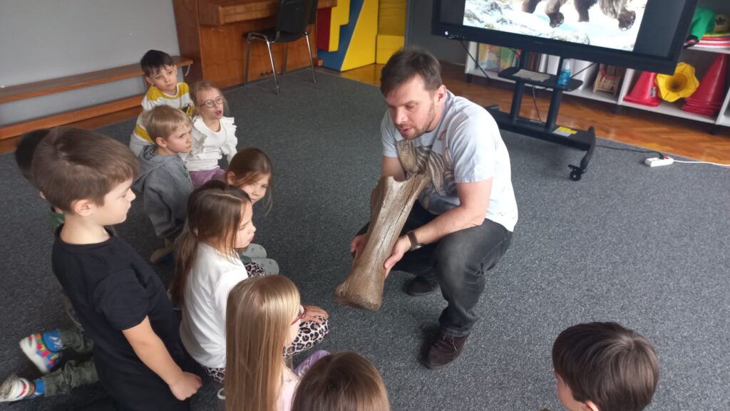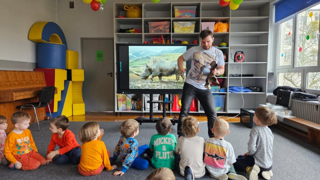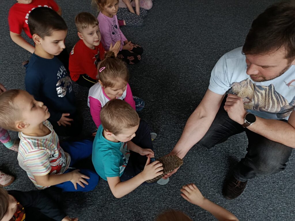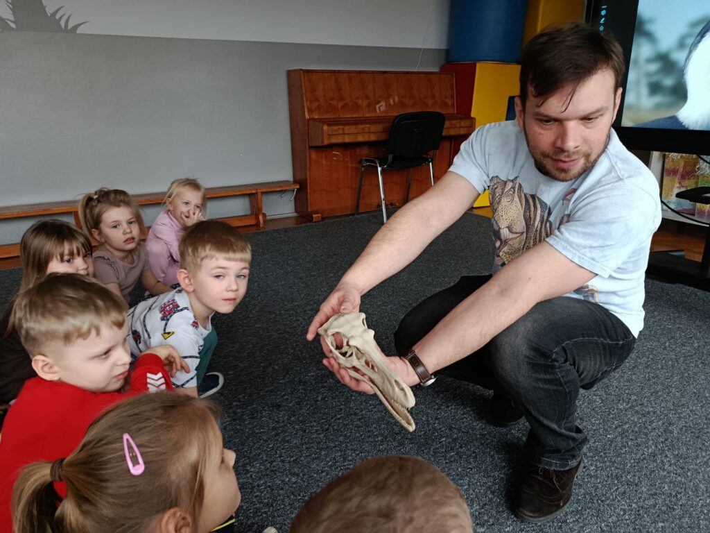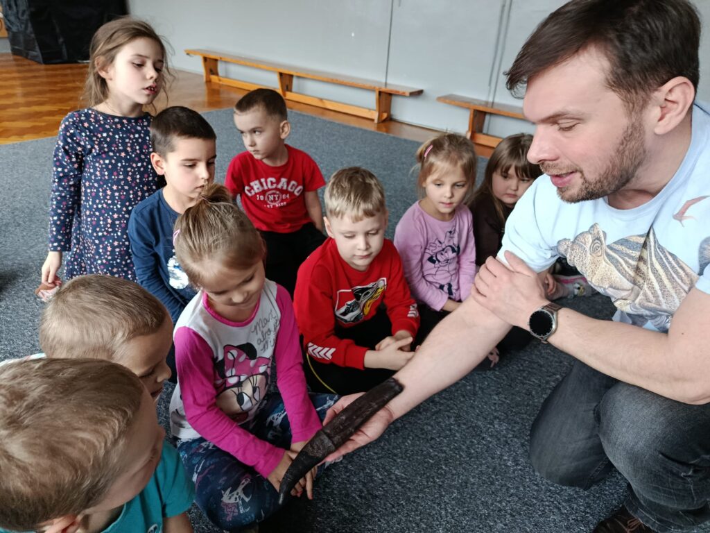 23.02. w naszym przedszkolu gościliśmy paleontologa, który zabrał dzieci w fascynującą podróż do prehistorycznego świata dinozaurów. Przedszkolaki dowiedziały się, kim jest paleontolog, jak powstają skamieniałości oraz jak wygląda praca przy wykopaliskach. Najwięcej radości sprawiła możliwość obejrzenia z bliska „kości dinozaurów”. To było niezwykle ciekawe i pełne emocji spotkanie!